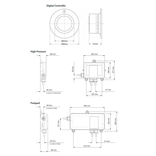- Inlet connections: 15mm push fit (supplied) or 15mm compression