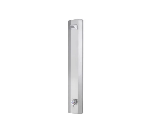 Ready to install shower panel with hot and cold water pipe entry to a Rada Meynell V8/3, having independent flow and temperature control, with a Rada VR2 vandal resistant chrome plated shower head. Available in stainless steel