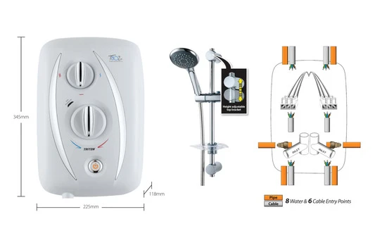 Triton’s newly designed Dura-Flow heater technology helps to reduce the build up of limescale by up to 80%, extending the life of the shower
