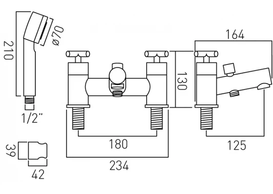 Vado Elements Water 2 Hole Bath Shower Mixer Deck Mounted With Shower Kit (Chrome) – Elw-130+K-C/P