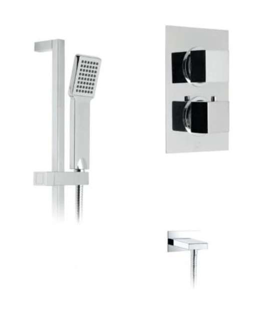 Vado Mix Concealed Thermostatic Shower Valve With Rectangular Back Plate (Includes Fittings For 1/2″ And 3/4″ Pipework), Single Function Slide Rail Kit And Wall Outlet – Mix-1710-V2-C/P